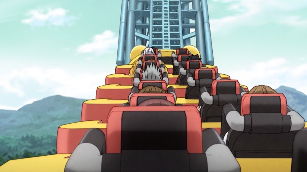 이후 사카모토 가족은 제트코스타에 탔는데, 기다리던 킬러 타츠도 제트코스타에 올라 타 사카모토를 노립니다. 이를 알아챈 신은 안전벨트를 푼 뒤, 타츠를 잡고 제트코스타에서 레일로 낙하합니다.