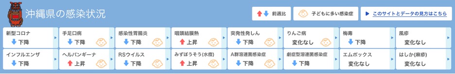 한편 오키나와현에서는 매주 전염병과 감염병 유행 및 발생상황을 업데이트하고 있다.